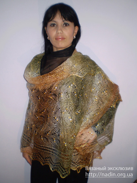 Восхитительный палантин-паутинка в золотисто-коричневых тонах. Тончайшая ажурная вязка из пуха ангорской козы и изящный декор вышивкой придают изделию особое очарование. Чудный подарок для дорогой вашему сердцу дамы. Ручная работа, размер палантина 70*170см. легкое - нежное изделие. Тончайшая ручная работа, удивительная нежность и невесомость, сказочно красивые узоры и вышивка – все это делает этот прекрасный, пуховый палантин лучшим подарком для любой женщины. Этот стильный аксессуар понравится даже самым капризным модницам! У него масса достоинств. Он связан вручную профессиональными мастерицами, что обеспечивает его абсолютную уникальность и неповторимость. Натуральный козий пух высочайшего качества, использованный при создании этого палантина, надежно защитит вас от холодного ветра. Изысканные узоры пухового палантина органично впишутся как в повседневный наряд, так и в праздничный вечерний образ, даря вам очарование и аристократизм. Бесспорно, этот пуховый палантин станет одним из ваших любимых аксессуаров и займет достойное место в гардеробе. Благодаря прочности и эластичности пряжи из натурального пуха, палантин прослужит вам долгие годы. |