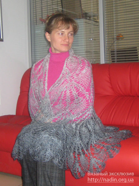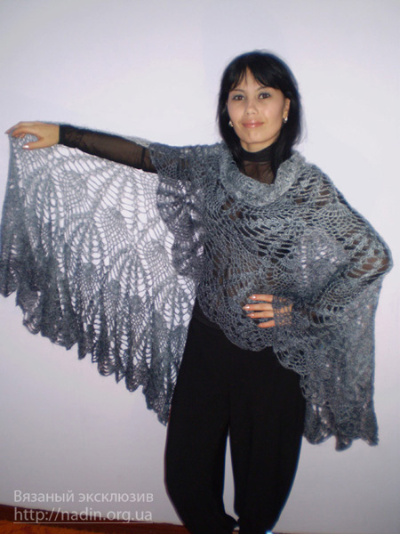 | Пуховая пелерина в классическом сером цвете, с мягким переходом оттенков от более светлого к глубокому и насыщенному. Ручная ажурная вязка, натуральный пух ангорской козы делают эту модель одним из наиболее удачных подарков для настоящей леди. Пелерина красиво драпируется на плечах, ниспадая мягкими складками с фигурной каймой. Материал — пух ангорской козы, Купить шаль ручной работы и порадовать подарком близкого человека просто! | |