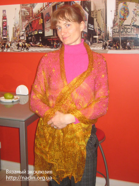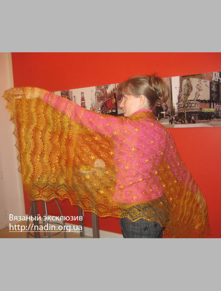 | Изумительный по красоте пуховый палантин с вышевкой - модный универсальный аксессуар. Его можно носить на голове, на плечах, на бедрах - вы в любом случае будете неотразимы! В этом тончайшей пуховой паутинке ручной работы будто поселились золотые солнечные лучи. От этого в нем становится еще теплей - особенно, когда солнечного света не хватает. Если надеть его с золотыми украшениями - вы превратитесь в настоящую королеву. | |